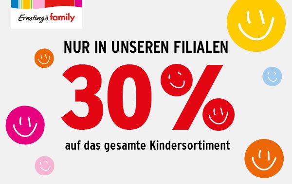 Bei Ernsting’s family gibt es vom 20. bis 21. November 30 % auf das gesamte Kindersortiment.